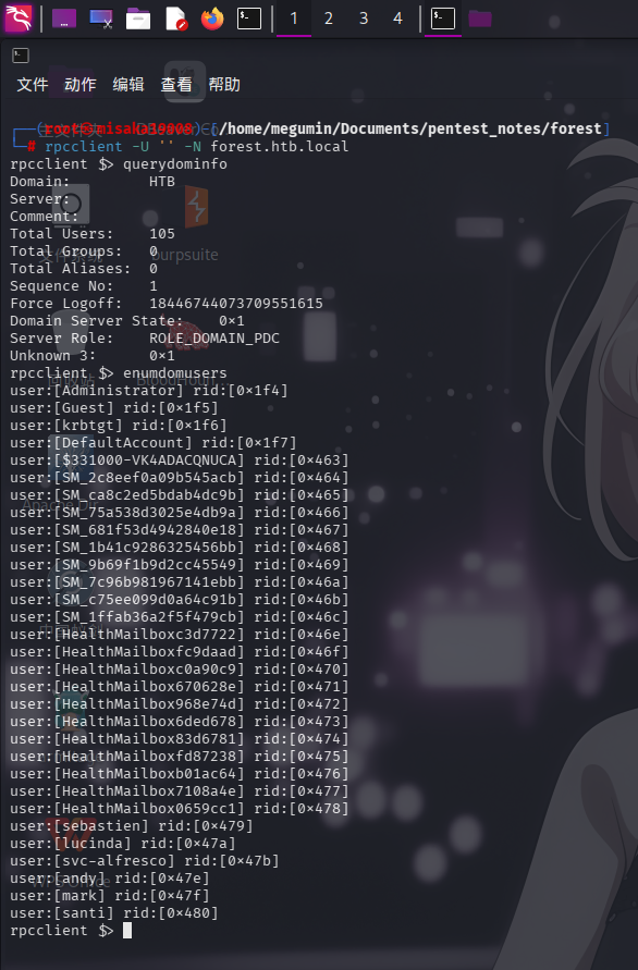 连接RPC服务成功!尝试执行enumdomusers命令获取域内用户: