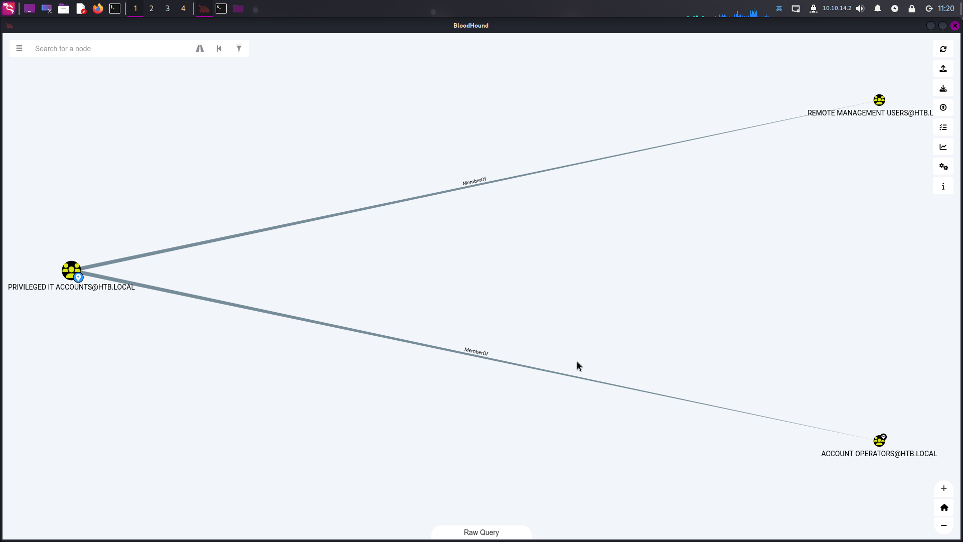点击对象按钮Privilege IT Accounts => First Degree Group Membership,查看其直接所属的用户组,发现该用户组直属于Account Operators组: