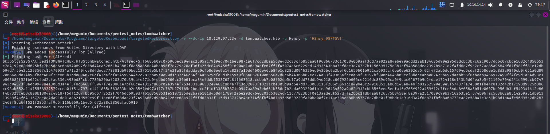 权限获得对还原后用户对象的完全控制权限,接着重设其密码,并使用certipy-ad