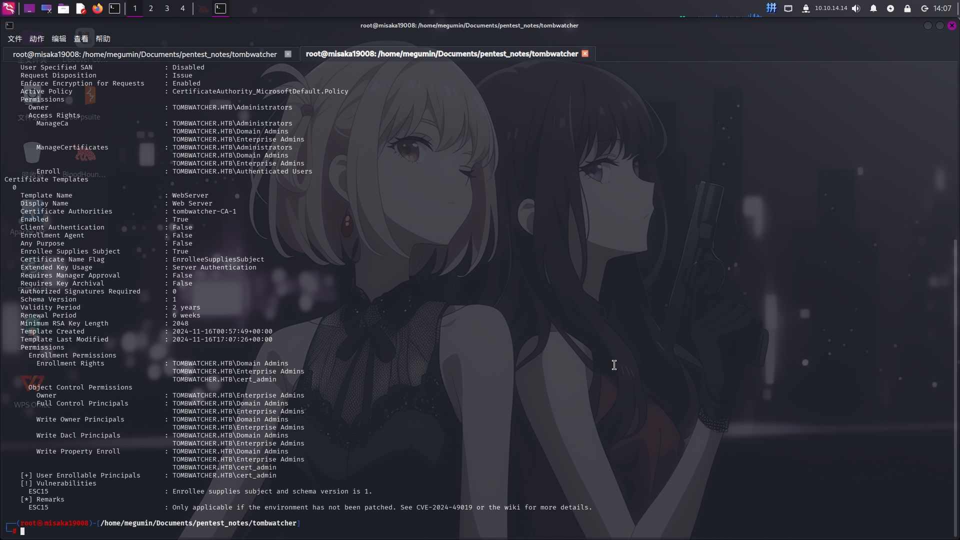| Subject Alternative Name: othername: 1.3.6.1.4.1.311.25.1:<unsupported>, DNS:DC01.tombwatcher.htb