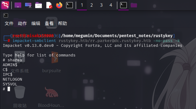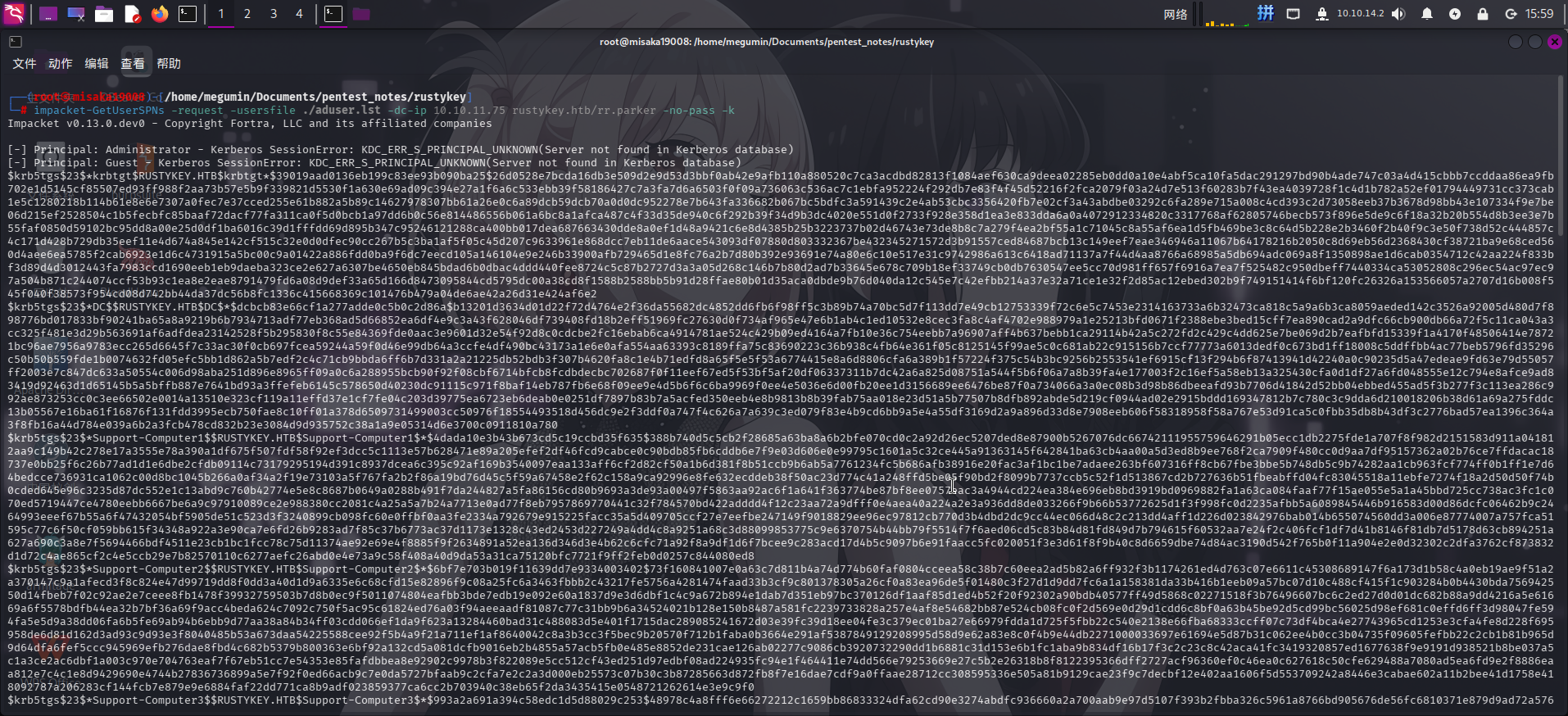 认为该错误信息产生的原因为目标系统不支持使用SMB NTLM登录。尝试使用impacket-getTGT工具请求一份rr.parker用户的TGT票据: