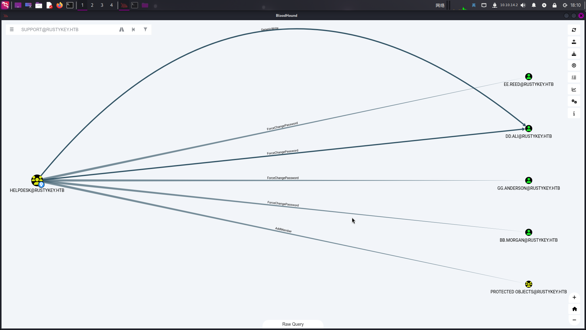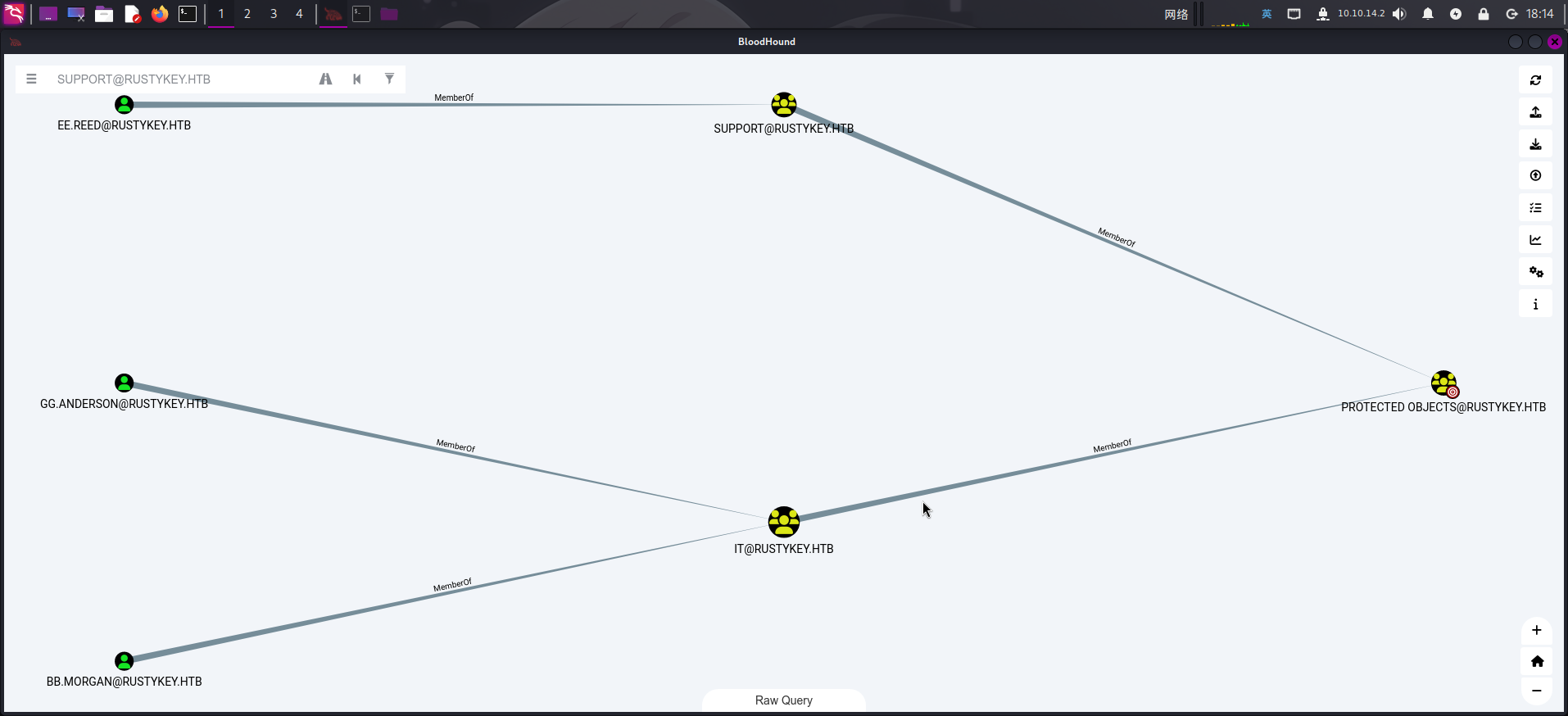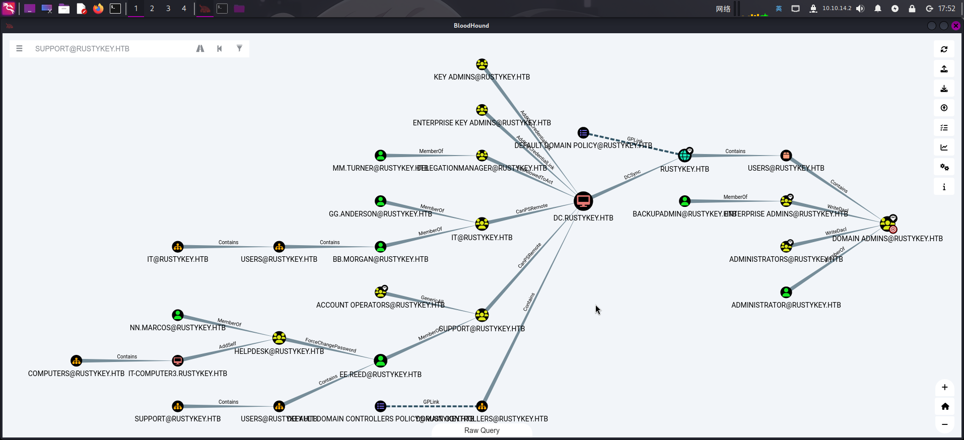 根据获取的BloodHound域内数据,Support组内只有ee.reed一个用户。