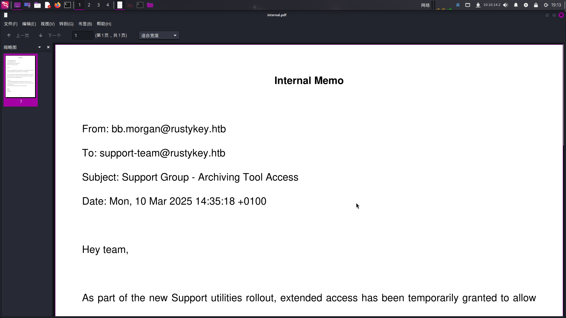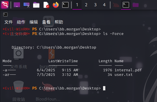 登录bb.morgan用户后,进行目录信息收集,在C:\Users\bb.morgan\Desktop\目录下发现了名为internal.pdf的文件: