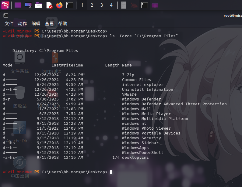 尝试列出Program Files内的应用程序目录,发现目标安装了7-Zip压缩工具: