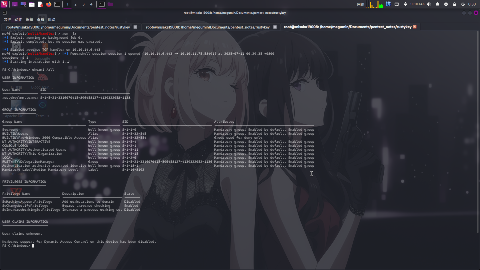 联想到之前在SMB服务的配置文件中发现的注册表项和SDDL权限信息,决定移动至ee.reed用户后,再进行更详细的信息收集。