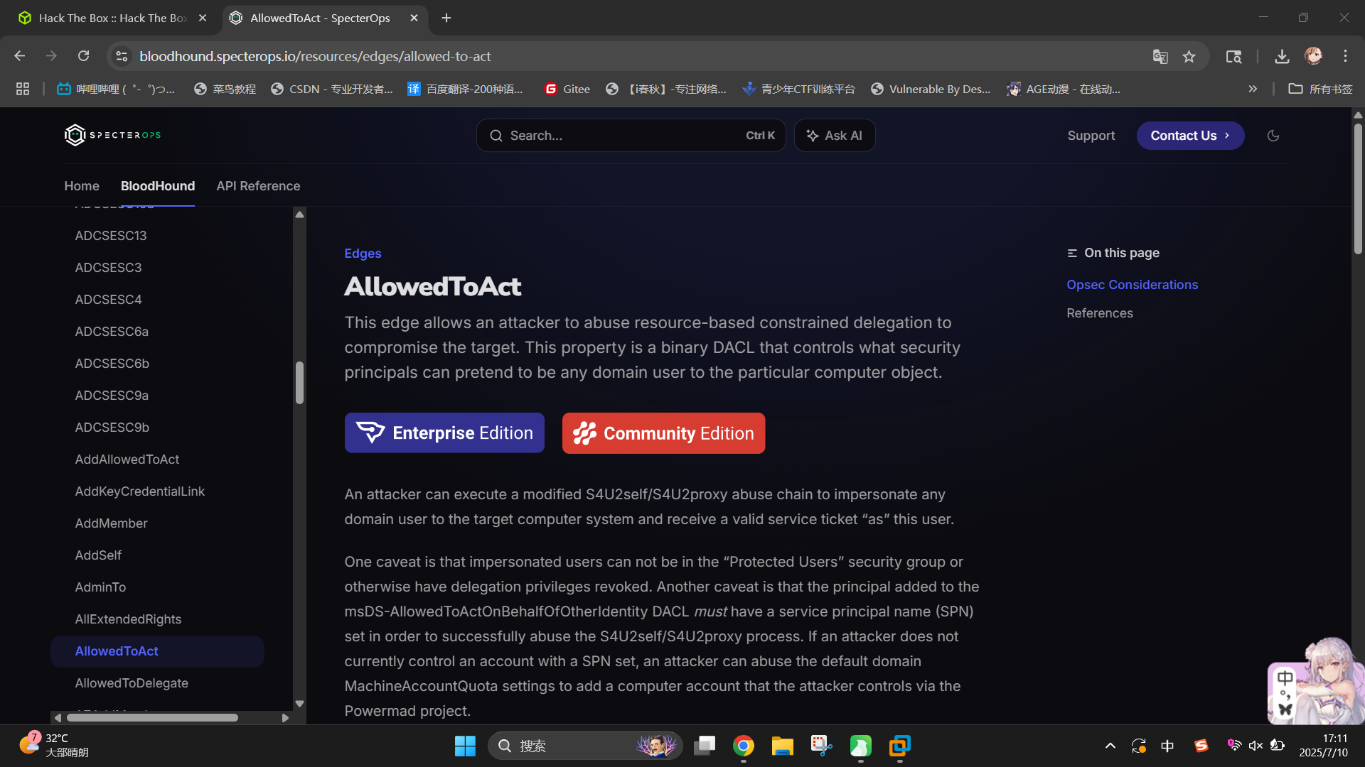 通过联网查询,成功找到关于该权限的利用方式:AllowedToAct - SpecterOps