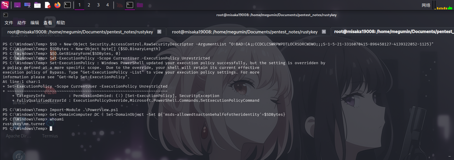 第三步,导入PowerView脚本,修改DC机器账户的目标属性: