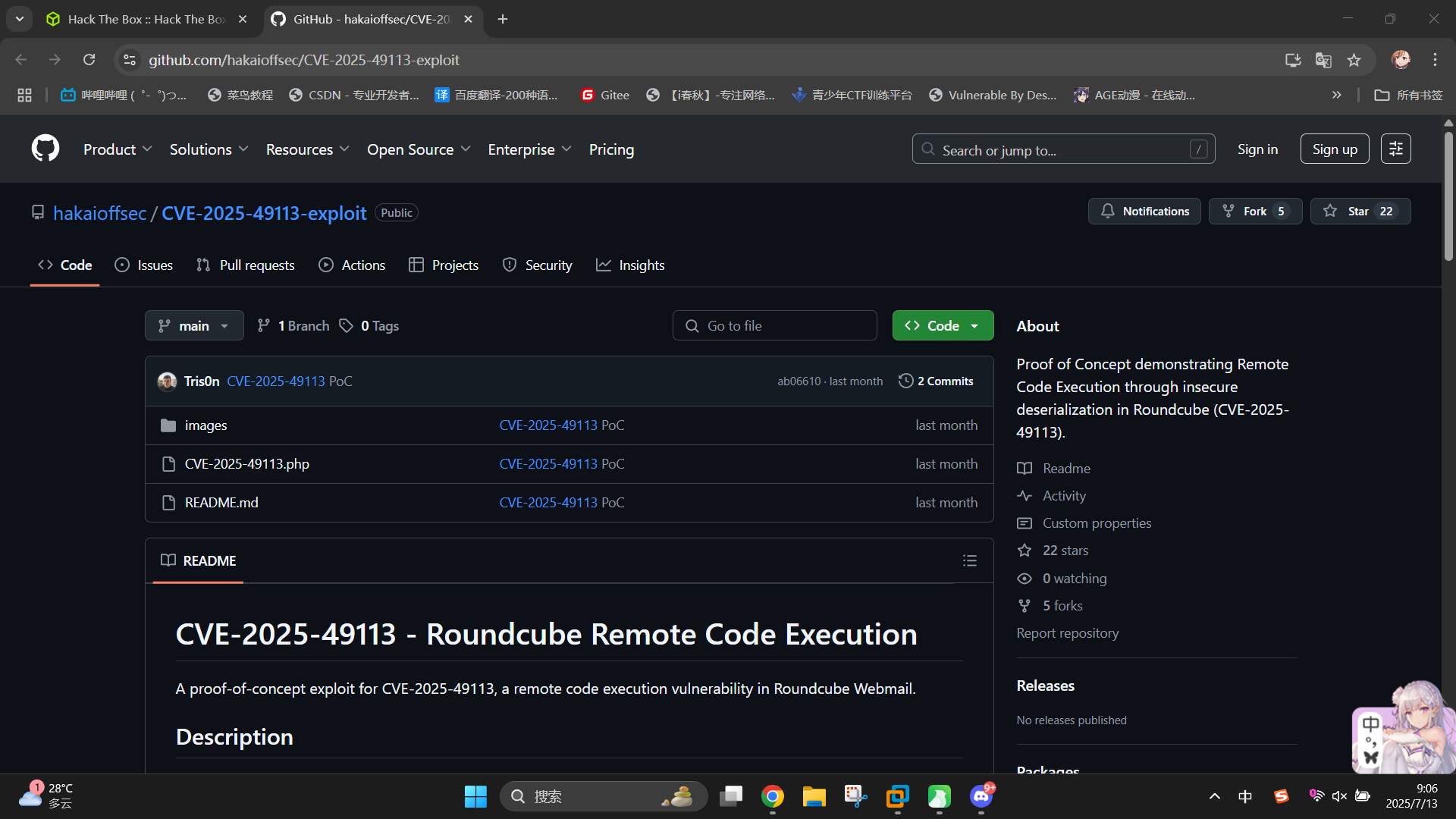 :GitHub - hakaioffsec/CVE-2025-49113-exploit: Proof of Concept demonstrating Remote Code Execution through insecure deserialization in Roundcube (CVE-2025-49113).