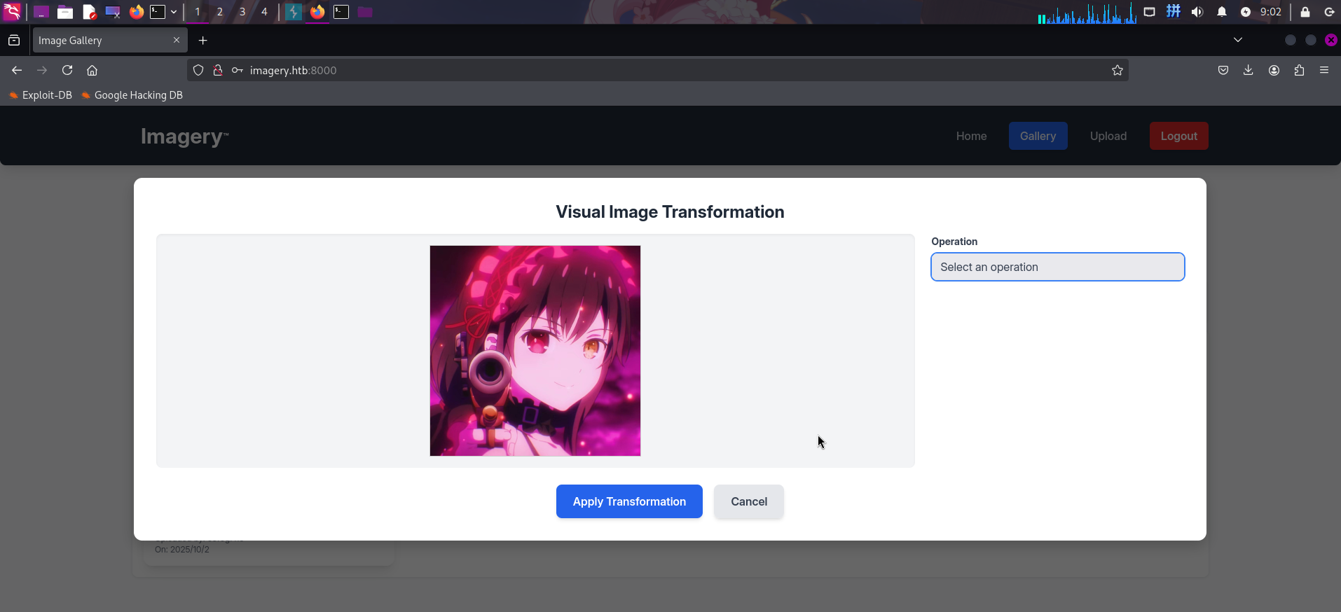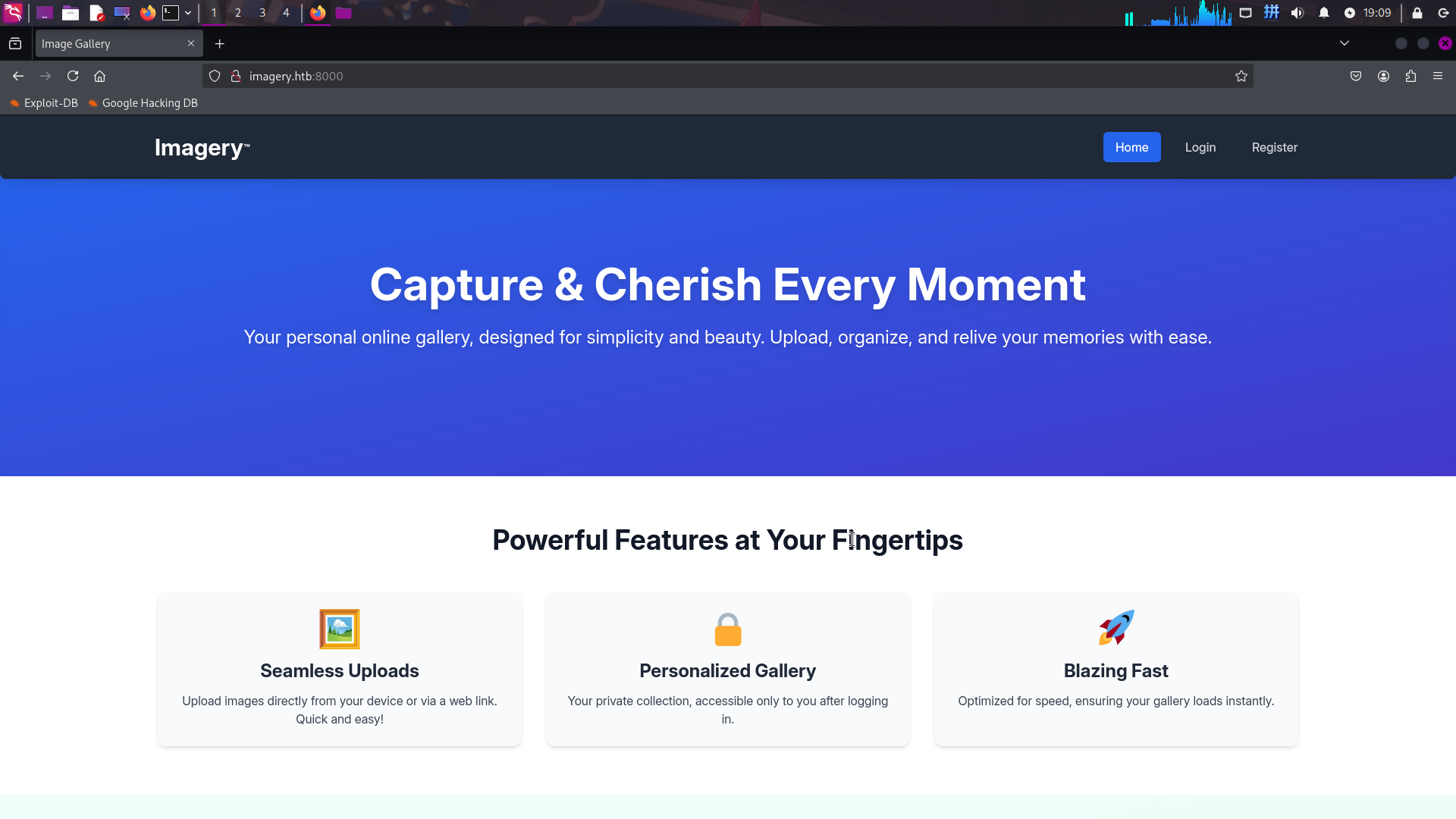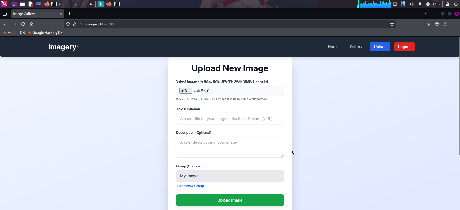打开主页:http://imagery.htb:8000/