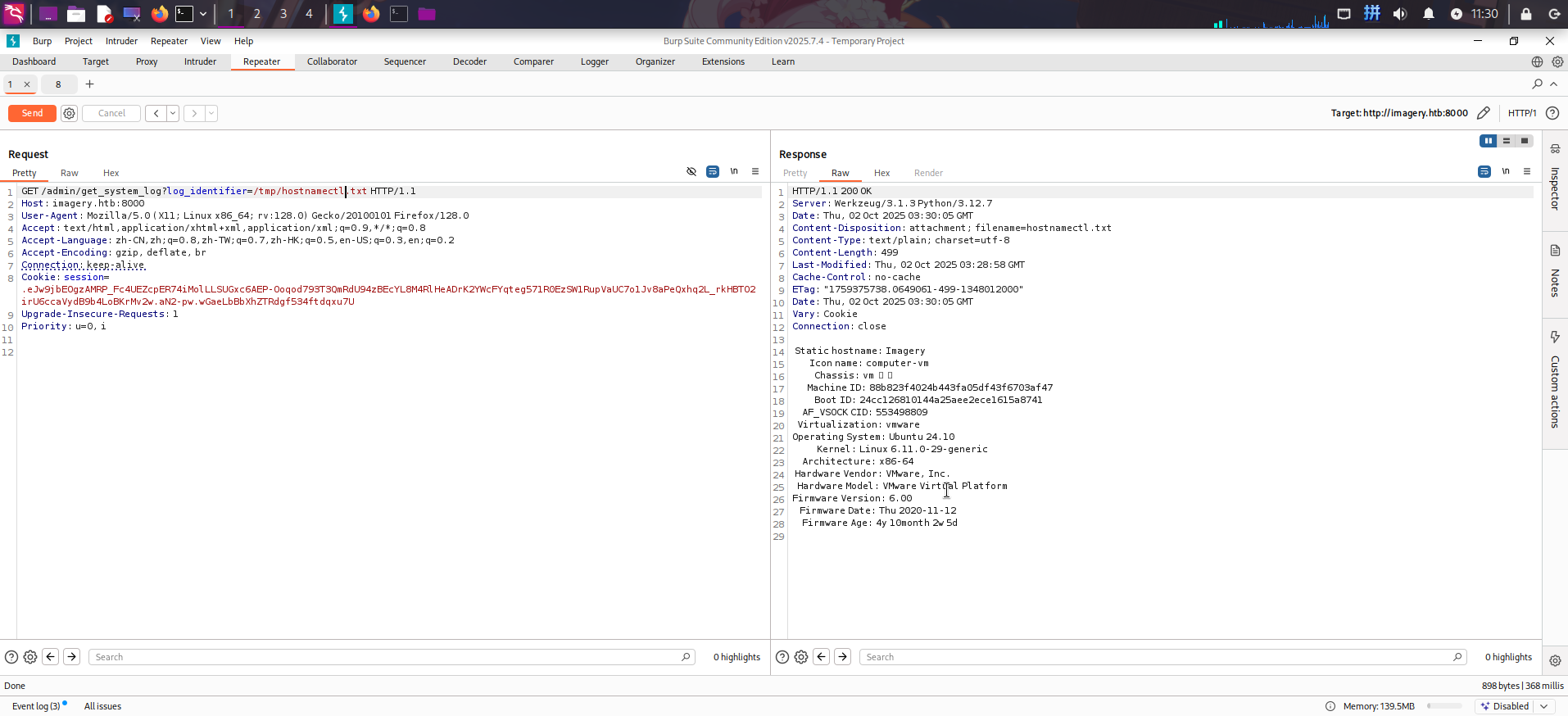 随后切换到之前的日志接口操作界面,读取/tmp/hostnamectl.txt: