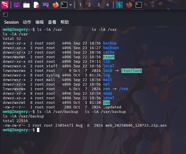 除此之外,还在/var/backup目录下发现了疑似经AES算法加密的数据文件web_20250806_120723.zip.aes: