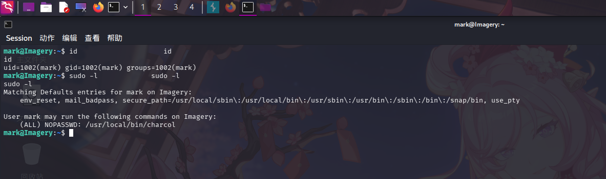 登录mark用户后,使用sudo -l命令查看用户Sudo权限: