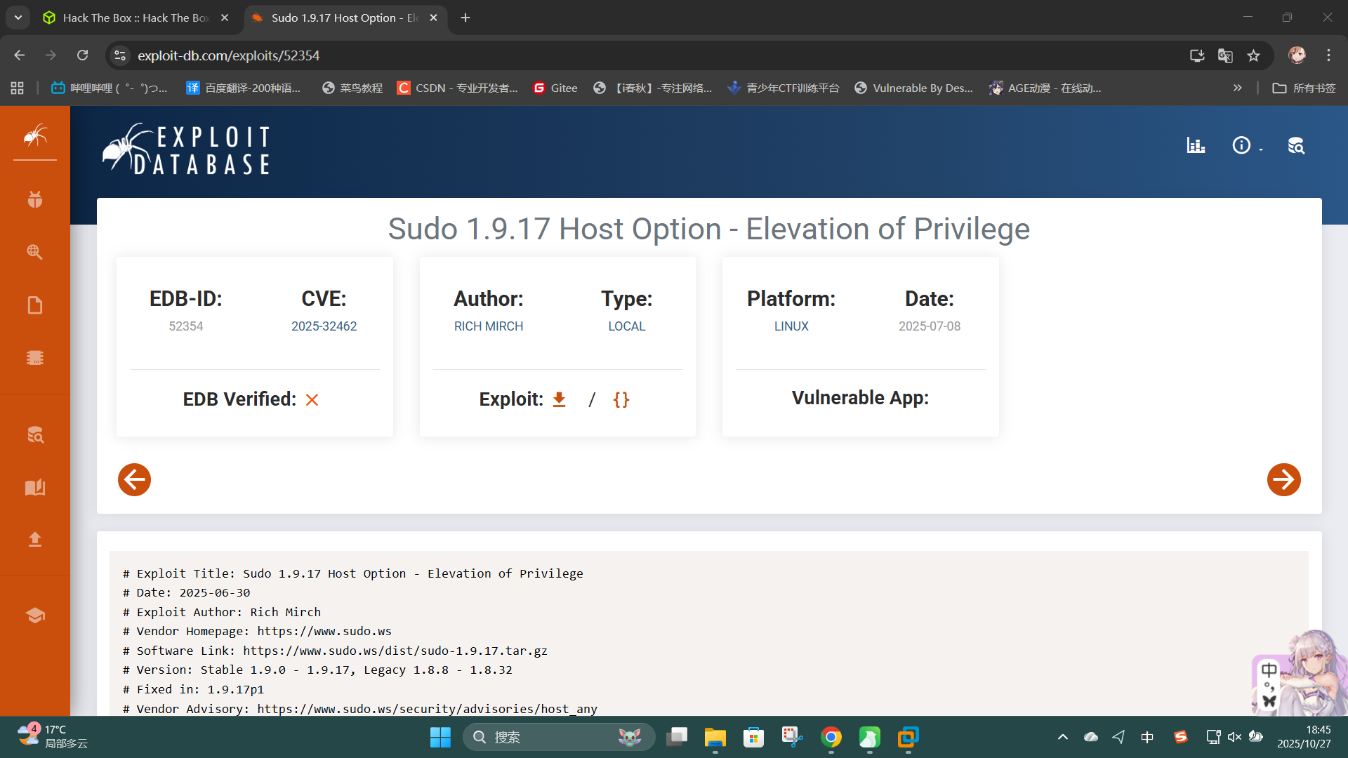 可知sudo程序版本为v1.9.17,联网查找漏洞: