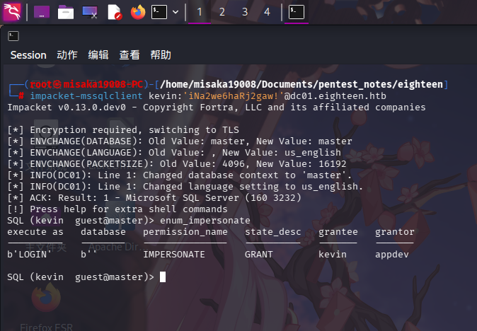 impacket-mssqlclient eighteen.htb/kevin:'iNa2we6haRj2gaw!'@dc01.eighteen.htb