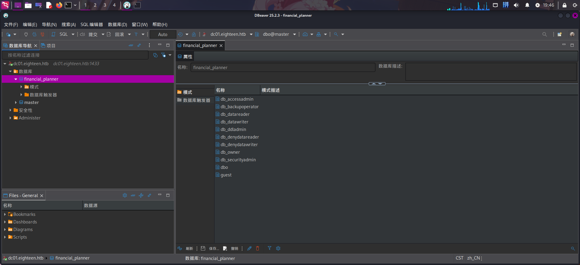 发现存在数据库financial_planner,尝试查看该数据库内模式,但无权查看。