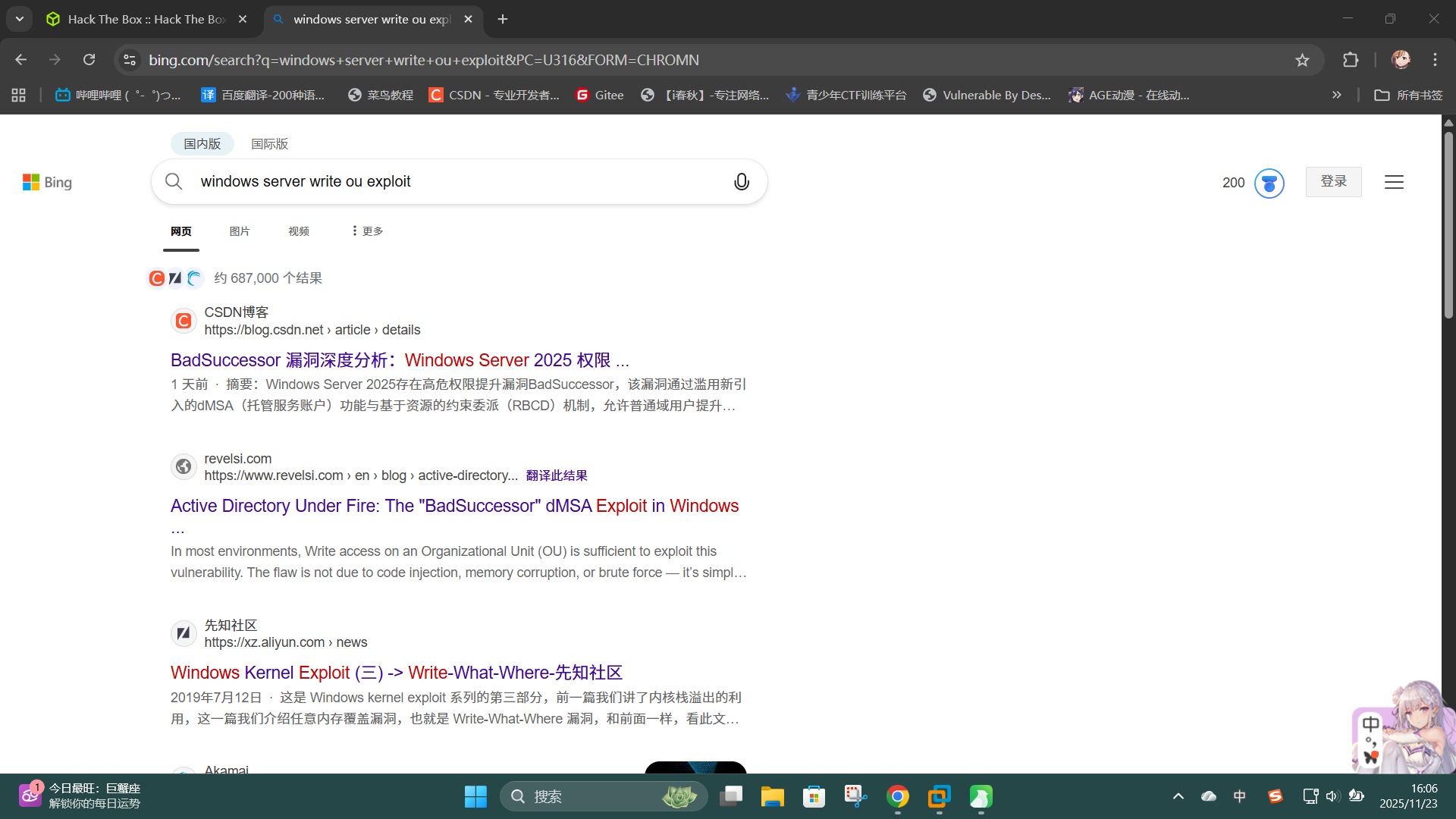 尝试联网搜索相关利用方法,发现Windows Server 2025的dMSA委派托管服务账户存在一个重大安全漏洞BadSuccessor,如攻击者有权限在某个组织单元中创建包含一些特殊属性的dMSA用户对象,就可以利用其进行权限提升: