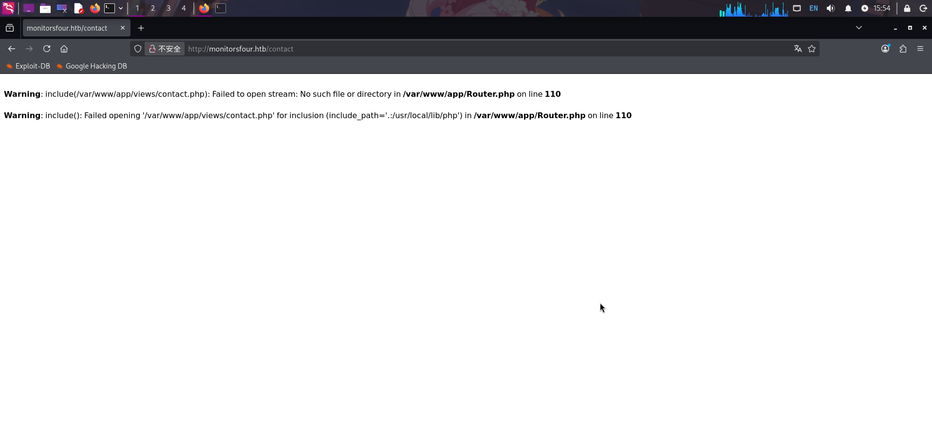 访问/contact接口,发现该接口尚未完成编写,导致PHP报错中暴露了网站目录绝对路径/var/www/app: