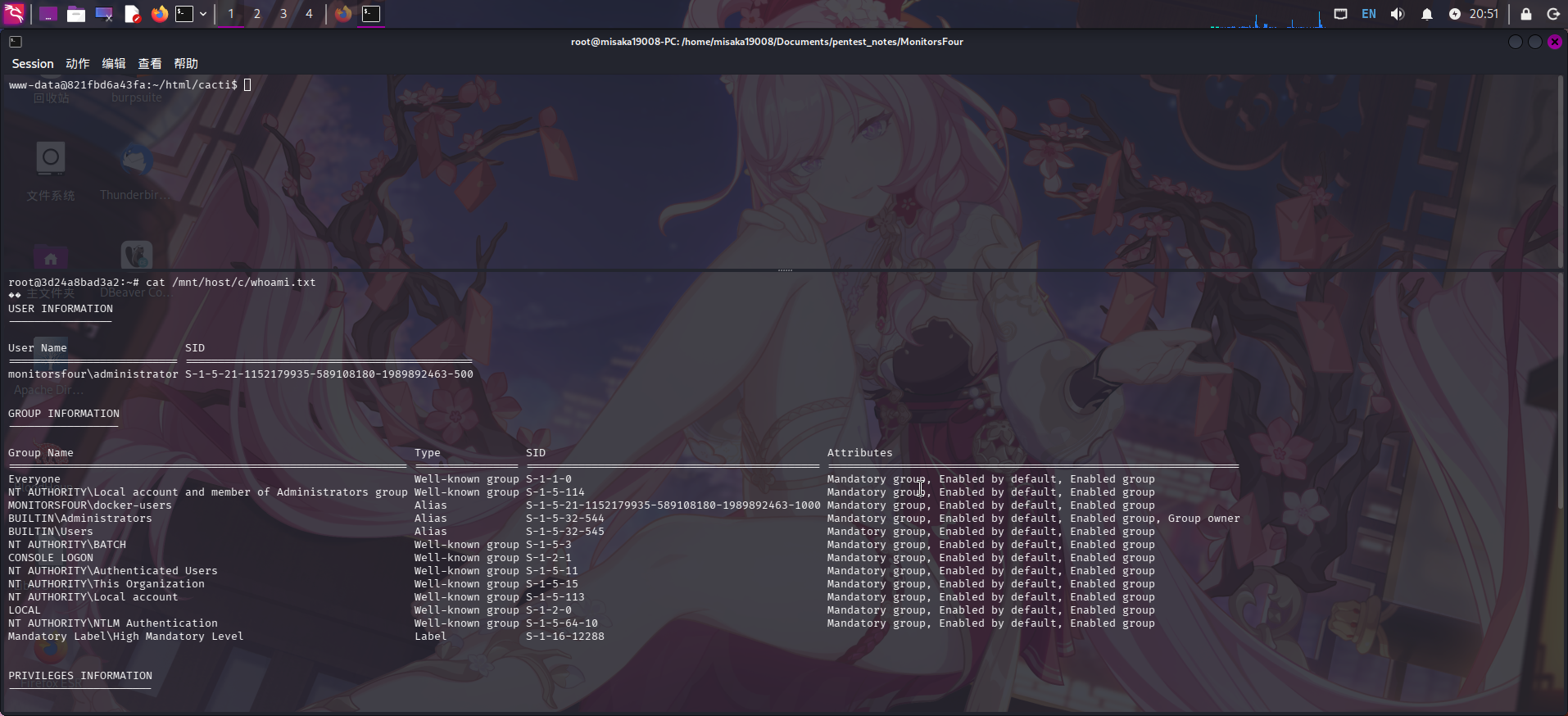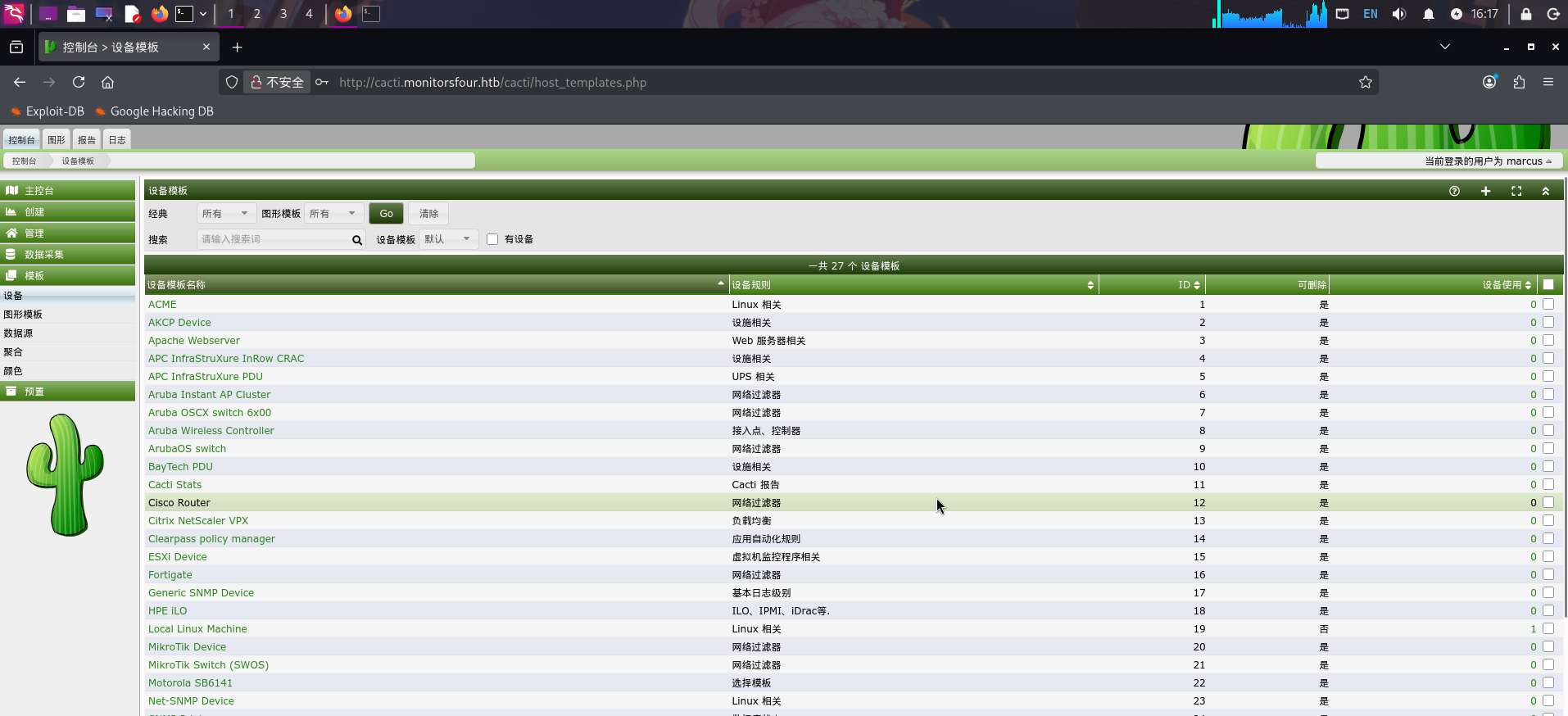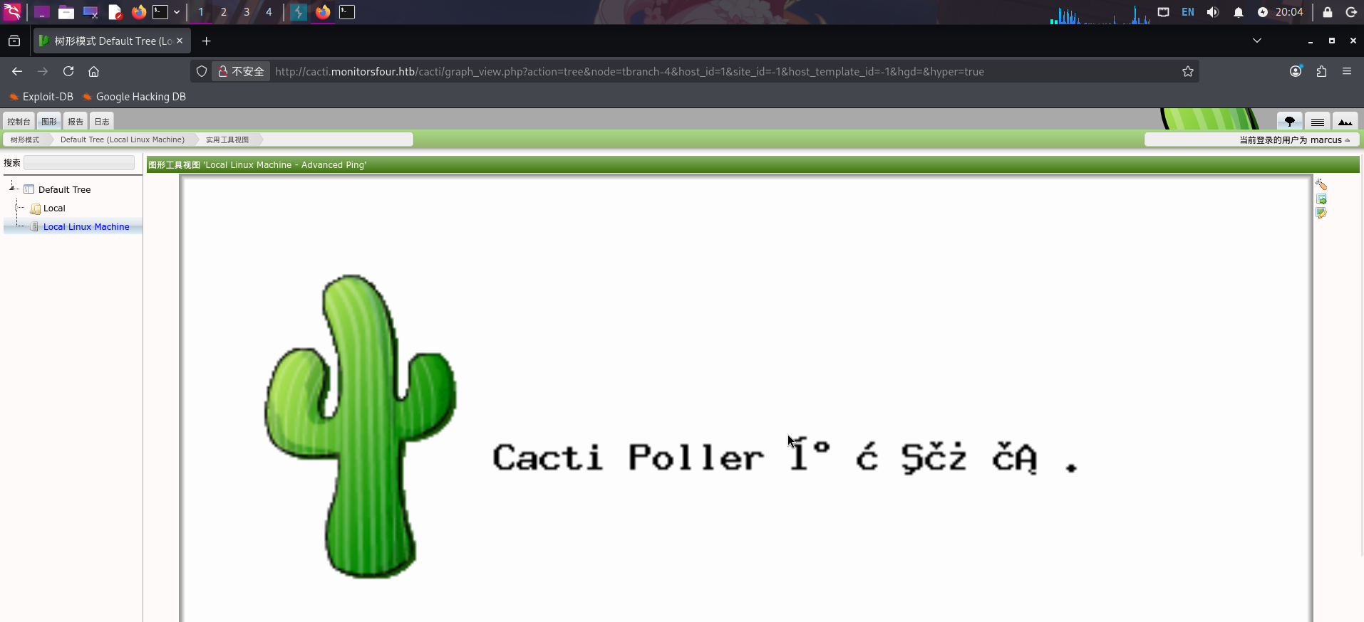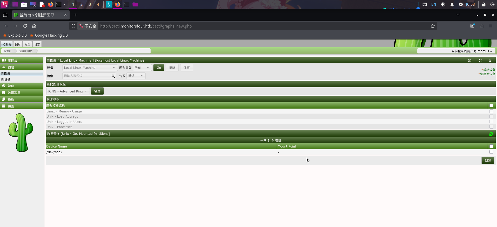 最后点击右上角的“图行数据”按钮触发恶意命令,访问http://cacti.monitorsfour.htb/cacti/shell.php: