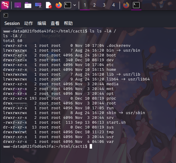 进入系统后,执行目录信息收集。在根目录下发现.dockerenv文件,说明当前处于Docker容器内: