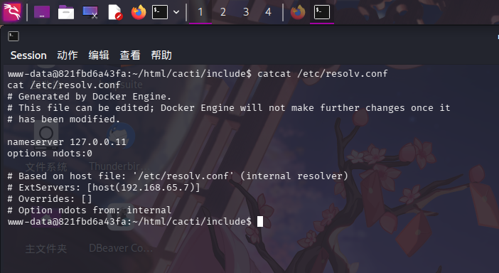 除此之外,还在/etc/resolv.conf配置文件内发现了一些注释,注释内存在内网IP地址:192.168.65.7,该IP地址还被描述为额外的内网DNS服务器: