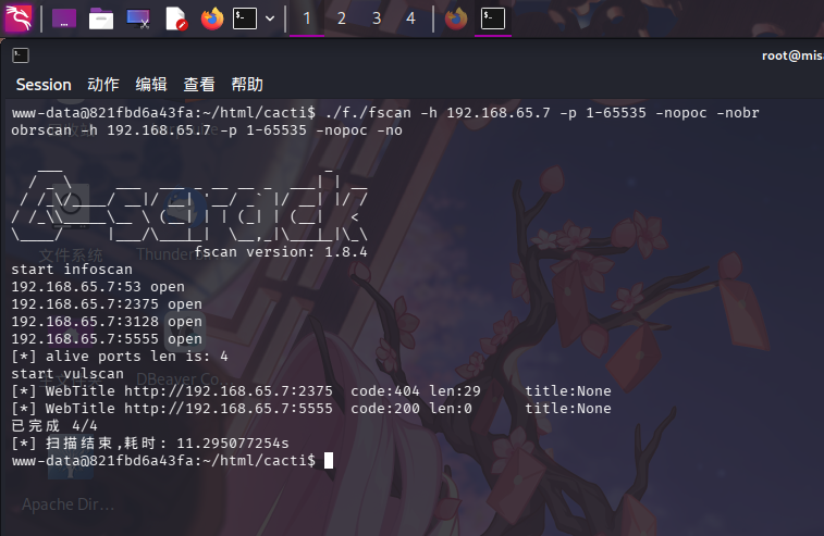 尝试上传fscan工具对该IP进行TCP扫描:GitHub - shadow1ng/fscan: 一款内网综合扫描工具,方便一键自动化、全方位漏扫扫描。