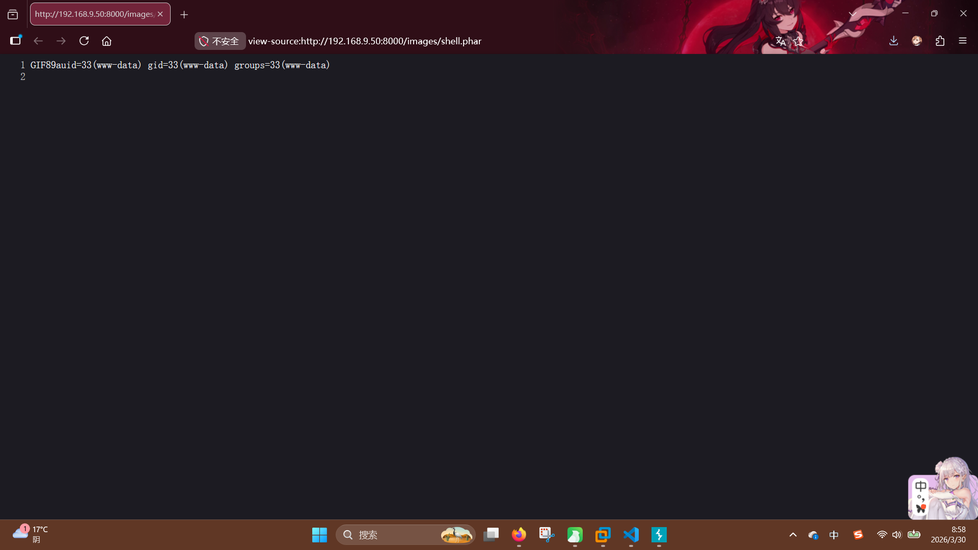 尝试将文件后缀名改为.phar上传,再次访问,发现成功执行: